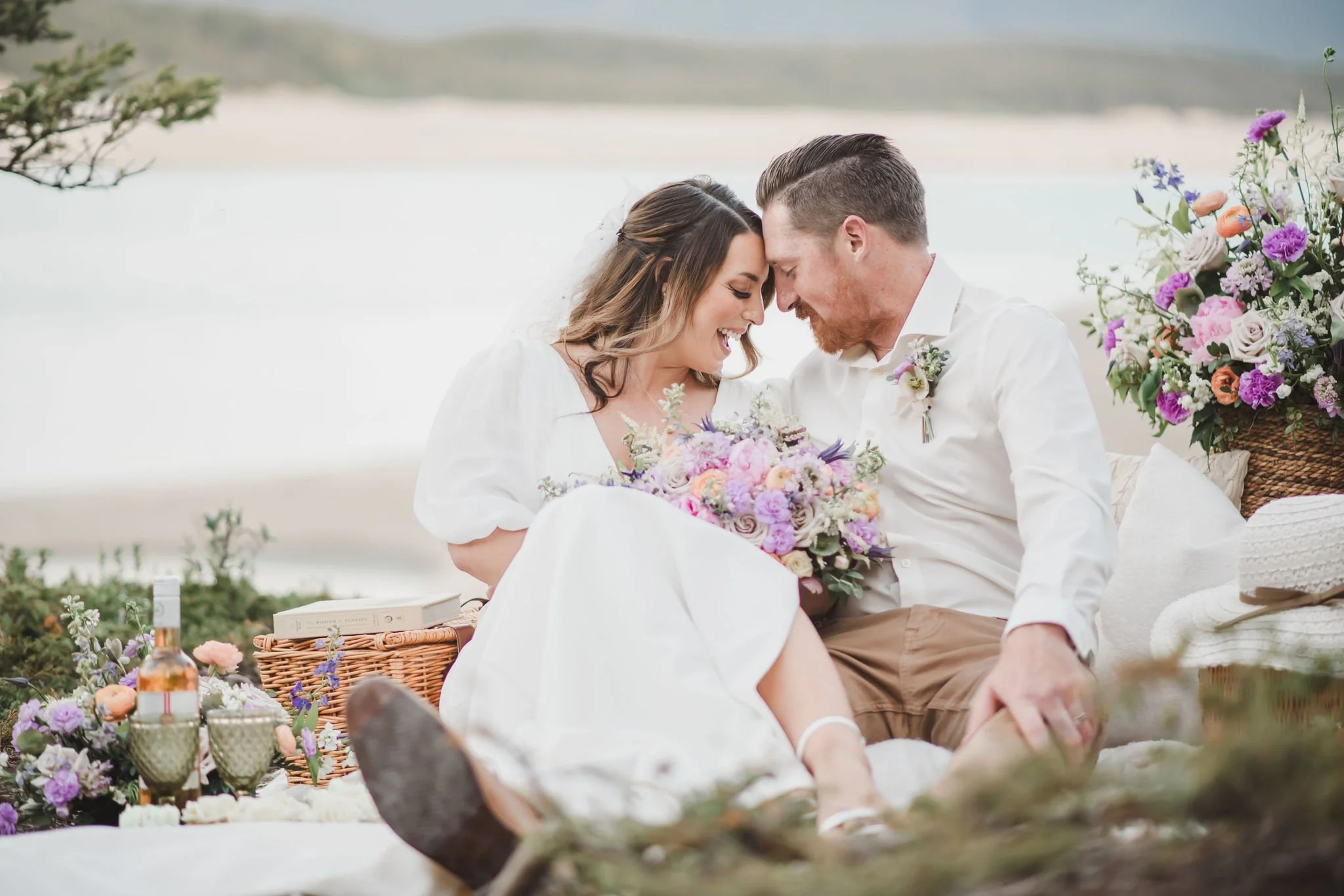The highlight of your elopement experience with this collection is not only your florals but the romantic picnic we have curated for your special day. This picnic is more than just a meal. It is a carefully crafted moment of togetherness, filled with stunning florals, an exquisite charcuterie box and a delicious mini cake for two. It does not end there, your morning breakfast is also included in a breakfast charcuterie box for two.