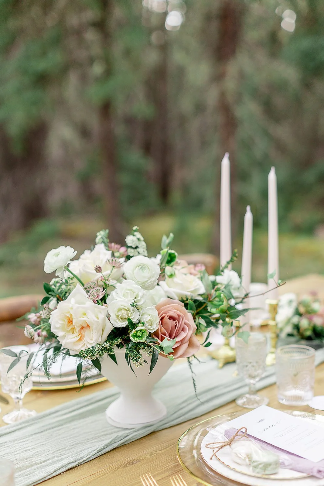 The Nordegg Tree House Elopement Collection will also include a small ground arrangement or arch floral piece 9for the arch provided by The Nordegg Tree House) for your ceremony area.